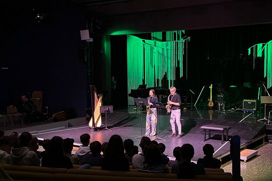Am 14. März fand zum zweiten Mal die Instrumentenvorstellung für alle ersten Klassen vom LG und RG statt. Das Publikum kam in den Genuss eines abwechslungsreichen Konzerts in dem Schülerinnen und Schüler solistisch, kammermusikalisch, als Band oder auch gemeinsam mit ihren Lehrpersonen musizierten.