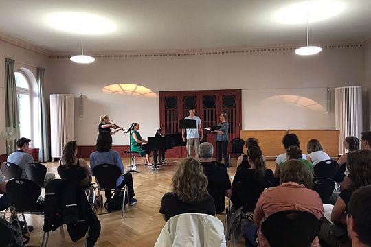 Stephanie Boller (Gesang) initiierte gemeinsam mit den Klavierlehrpersonen Erika Schmied und Nicole Vignoli ein öffentliches Schülerkonzert im GZ Hottingen.