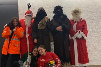 Kurz darauf, am 6. Dezember, folgte der "Samichlaustag". Einige freiwillige Sechtklässlerinnen und Sechstklässler meldeten sich als Samichläuse, Schmutzlis und Renntiere. Die Kläuse, bereit die Gänge des Literargymnasiums in Angst und Schrecken zu versetzen, stürmten daraufhin in die Schulzimmer der noch nichts ahnenden Klassen. Sie beschenkten die Schülerinnen und Schüler mit Mandarinen und Nüssen. Natürlich wurden die nicht folgsamen Schülerinnen und Schüler dementsprechend in kleinen Spielen etwas geneckt! Die SO freut sich schon, diesen lustigen Tag nächstes Jahr wieder mit euch durchzuführen.